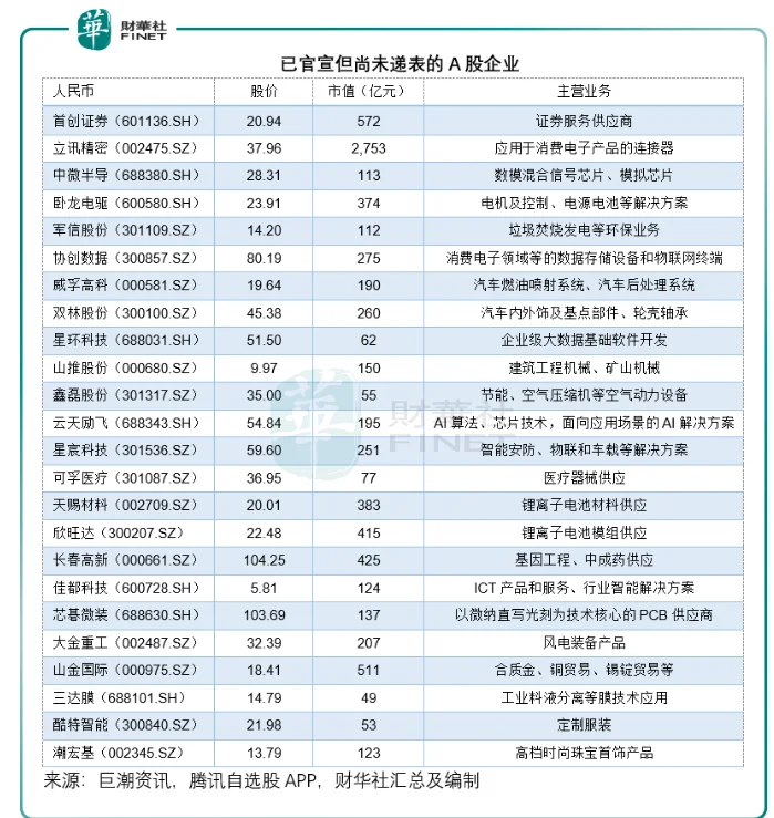 财华社根据巨潮资讯和港交所披露的信息交叉比对进行汇总,粗略估算状态为“处理中”的A股企业上市申请有36宗。