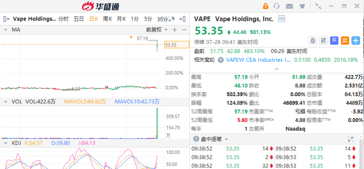 美股异动丨VAPE暴涨500%触发熔断!半导体股多数走高,AMD涨超3.5%