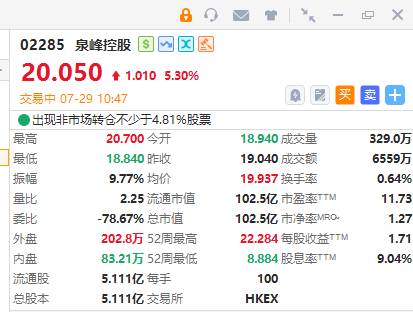 泉峰控股(02285)再涨超5%,截至发稿,涨5.3%,报20.05港元,成交额6559万港元。