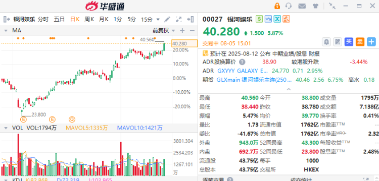 2、澳门7月赌收胜市场普遍预期,澳门博彩监察协调局近日公布,今年7月份澳门幸运博彩毛收入221.25亿澳门元,同比升19%。今年前7个月澳门博彩毛收入累计达1408.96亿澳门元,同比升6.5%。