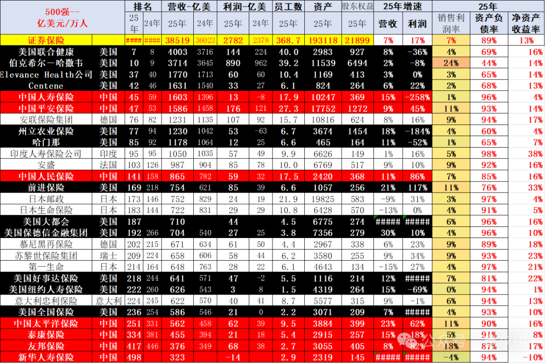 证券保险业是世界500强公司中占比最高的,中国企业表现很分化,在总共57家企业中,中国企业有7席,倒闭或被拆分也较多。