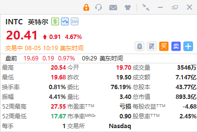 周二,英特尔早盘(INTC.US)涨逾4%,报20.41美元。消息面上,据报道,作为降低关税的条件,特朗普政府要求台积电联合收购英特尔高达49%股份。长期以来,英特尔深陷“经营泥潭”,自2024年第三季度起连续五个季度亏损,为了让英特尔重回正轨,特朗普政府施压台积电。