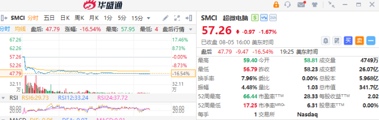 服务器制造商超微电脑周二公布令人失望的第四财季业绩并发布疲软的季度业绩指引后,其股价在盘后交易中下跌16%。