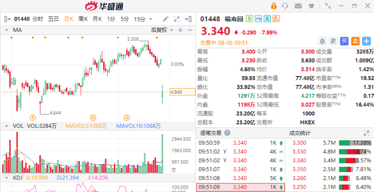 8月6日讯,港股福寿园盈警后股价大跌8%!公司估计中期转亏最少2.35亿人民币。