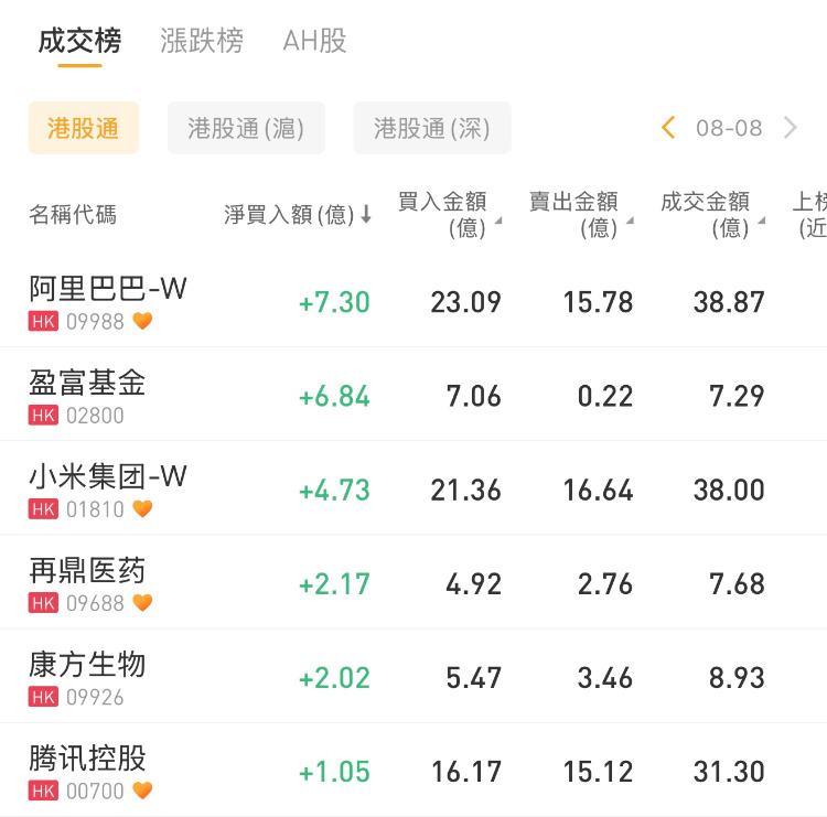 阿里巴巴-W、盈富基金、小米集团-W分别获净买入7.3亿港元、6.84亿港元、4.73亿港元;
