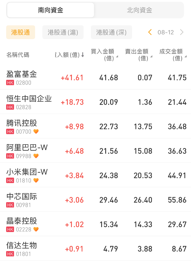 南向资金买入盈富基金超41亿港元,沽出快手-W超23亿港元