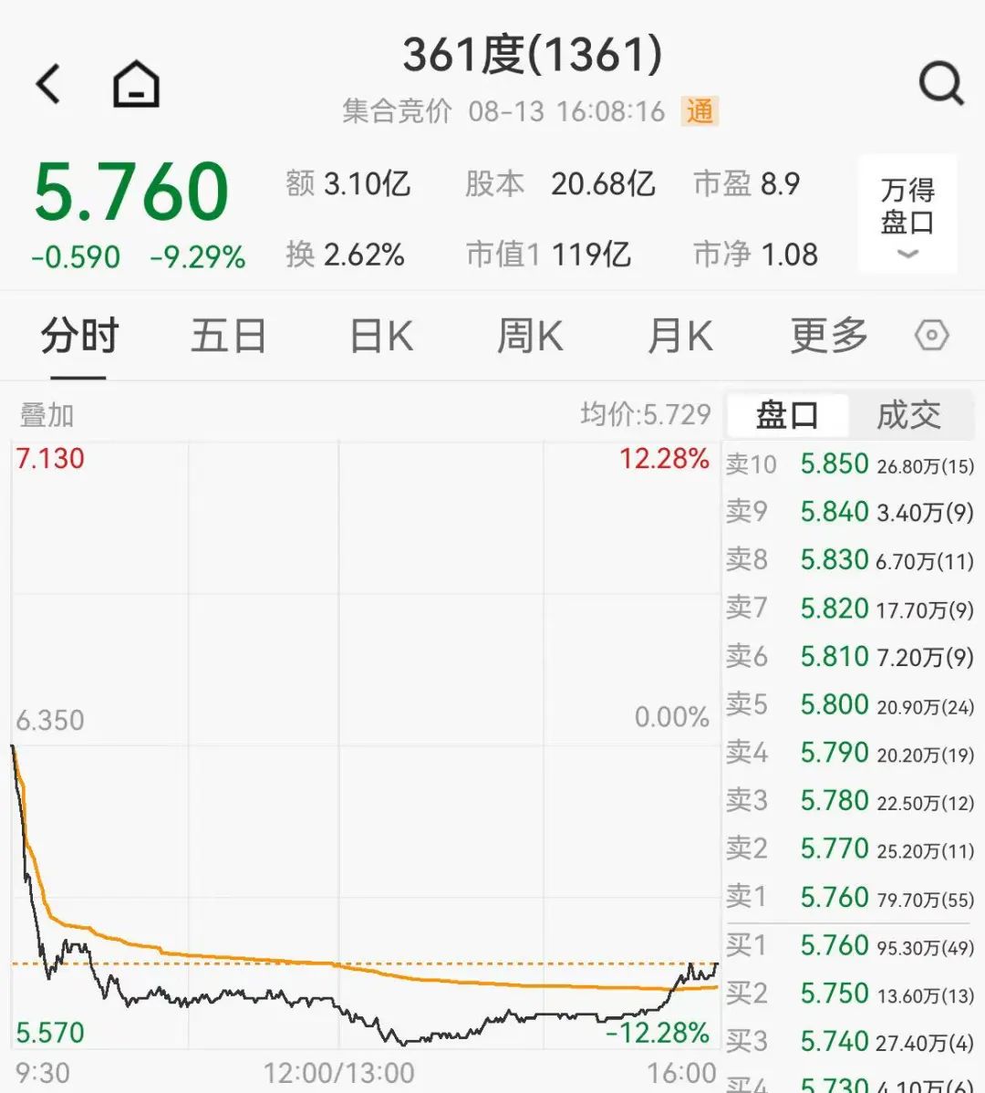 361度今日开盘后持续下跌,最大跌幅超12%。