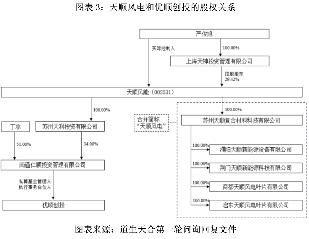 无独有偶,如图表3所示,道生天合的原股东苏州优顺创业投资合伙企业(有限合伙)(下称“优顺创投”)与道生天合的主要客户天顺风电也存在股权关系。