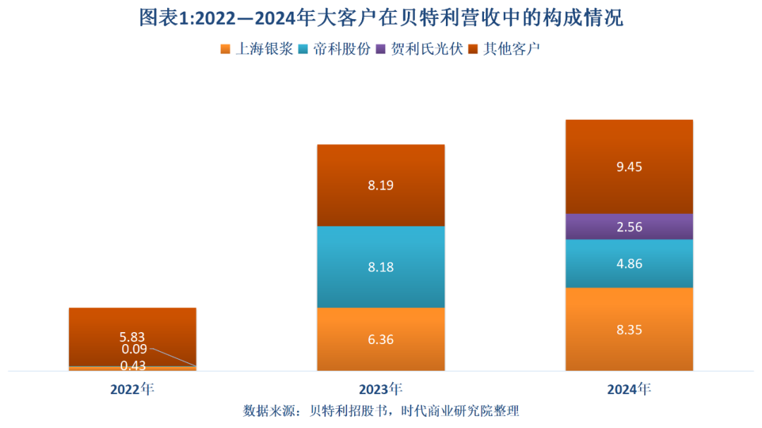 除了原有的大客户,2024年,贺利氏光伏(上海)有限公司(下称“贺利氏光伏”)也跻身贝特利前五大客户之列,并凭借2.56亿元的销售收入成为其第三大客户。