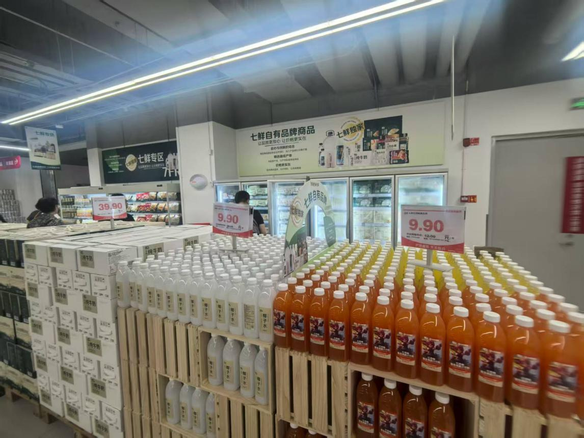 值得一提的是,京东旗下自有品牌七鲜、京悦、京鲜舫和京东京造在店内集中亮相。前述门店人士对财联社记者介绍,这些自有品牌商品,都有着极高的“质价比”和“性价比”。