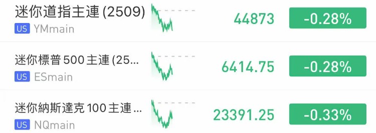 华盛资讯8月20日消息,美股三大指数期货盘前微跌,纳指期货 $NQmain 跌0.33%,标普500期货 $ESmain 跌0.28%,道指期货 $YMmain 跌0.28%。