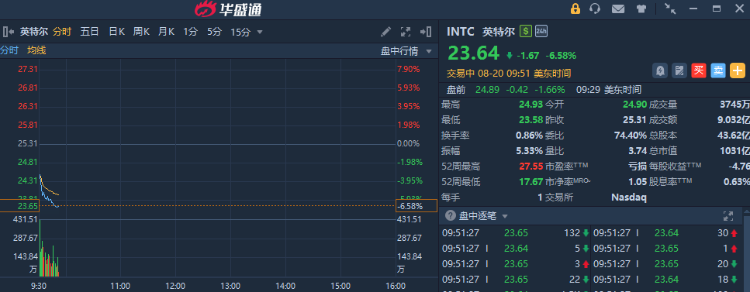 英特尔大跌超6%,美光科技跌超3%,美国或将“补贴换股权”计划扩围至其他芯片公司;塔吉特跌近9%,此前公司财报不及市场预期。