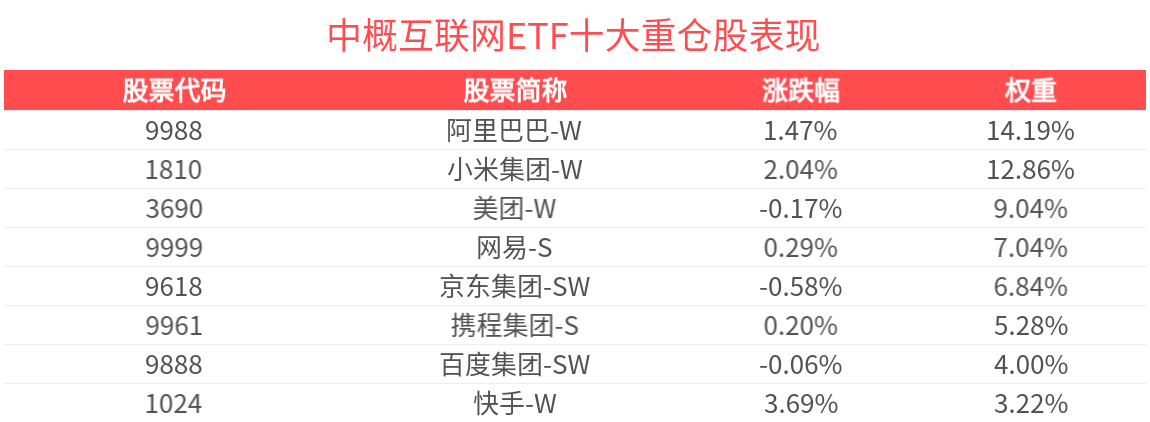 数据显示,截至2025年7月31日,中证海外中国互联网30美元指数前十大权重股分别为腾讯控股、阿里巴巴-W、小米集团-W、拼多多、美团-W、网易-S、京东集团-SW、携程集团-S、百度集团-SW、快手-W,前十大权重股合计占比86.33%。