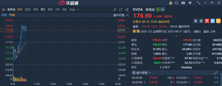 华盛资讯8月25日讯,美股三大指数盘中涨跌不一,其中道指跌约0.40%,纳斯达克指数翻红微涨0.02%,标普500指数跌0.15%。