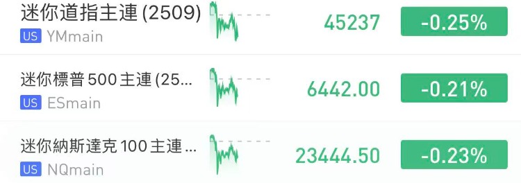 华盛资讯8月26日消息,美股三大指数期货盘前微跌,纳指期货 $NQmain 跌0.23%,标普500期货 $ESmain 跌0.21%,道指期货 $YMmain 跌0.25%。