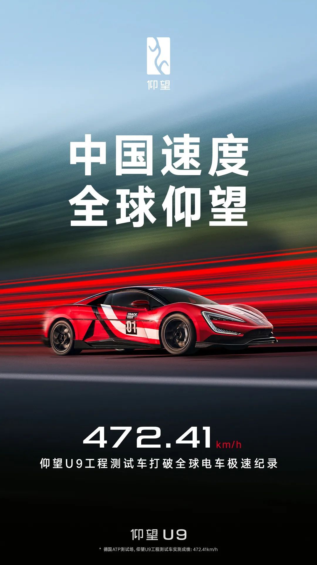 8月26日,比亚迪仰望宣布,仰望U9工程测试车打破全球电车极速纪录,最高时速达472.41km/h。