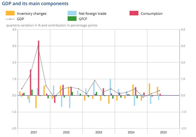 Real gross domestic product (GDP) rose in the second quarter of 2025 by 0.3% after a 0.1% gain in the previous quarter, data from the country's National Institute of Statistics and Economic Studies showed today. However, net foreign trade fell 0.3% in the quarter, compared with a 0.5% decline in the first quarter.