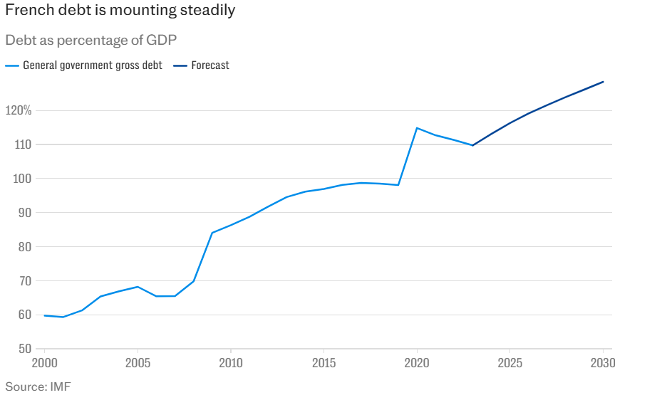 "France needs to put its fiscal house in order, but politics stands in the way," Daniel Kral, a macroeconomy analyst, posted on X. "It faces a toxic mix of low growth, widening deficit, and rising cost of servicing its debt. A lost no-confidence motion and more political instability will hardly help."