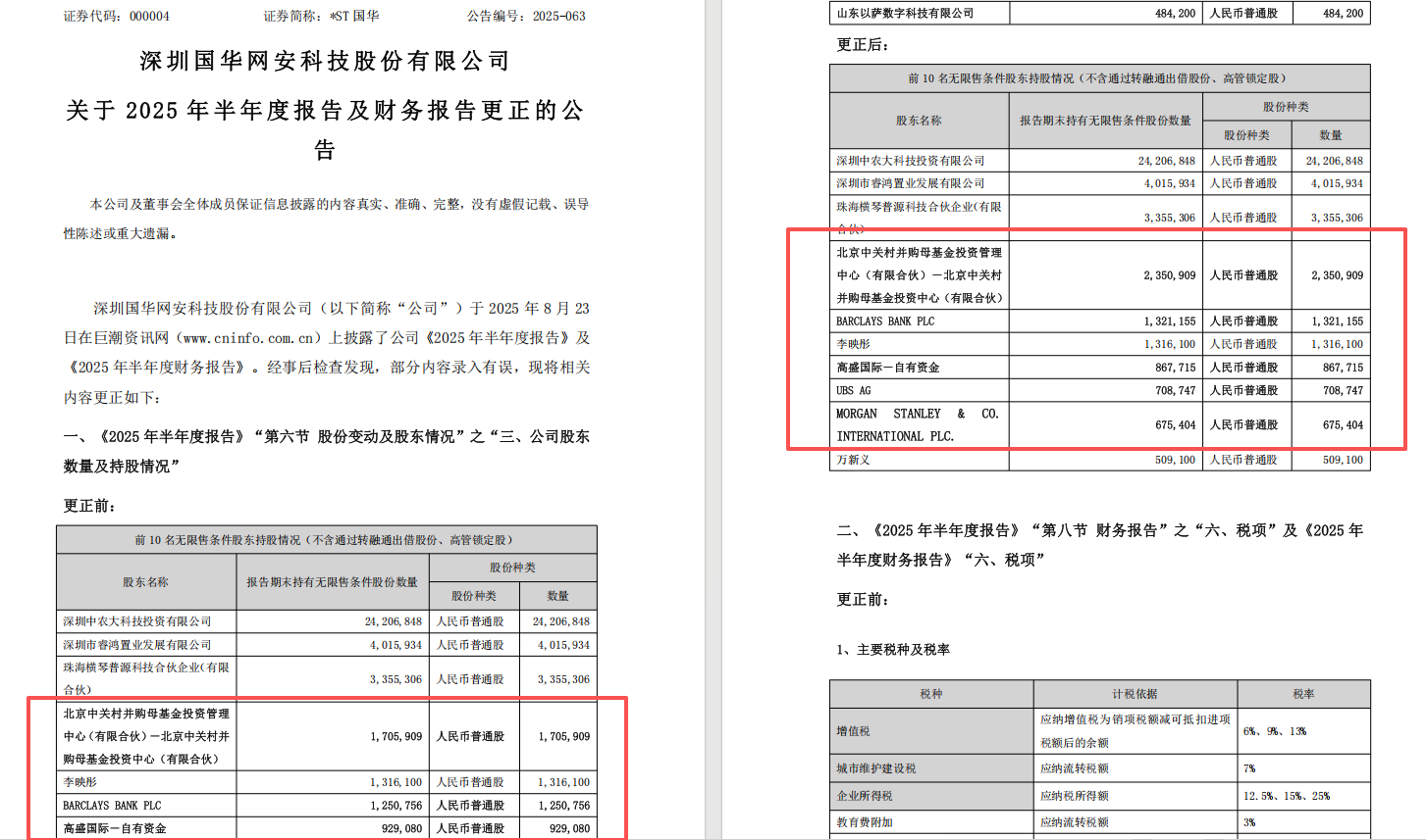 国子软件、*ST国华、金煤科技更正的问题均涉及中报里的前十大股东持股情况。同时*ST国华还更正了存在的不同企业所得税税率纳税主体。金煤科技还更正了合并财务报表部分项目注释。