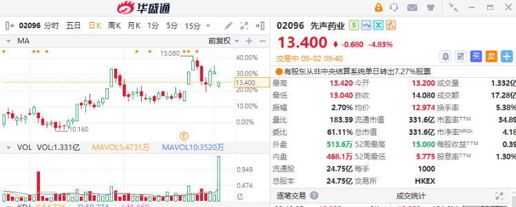 9月2日讯,港股先声药业(02096)折价配股,早盘股价应声低开6.25%,截至发稿跌超5%。