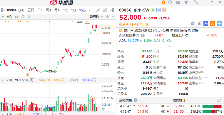 蔚来(9866)将于今日盘后公布业绩,此前宣布8月交付31,305辆汽车,同比增55%。蔚来股价近期大幅上涨,主要受惠于 Onvo L90 和蔚来 ES8 SUV 的两款新车的强劲订单流。