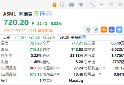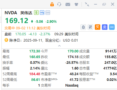 华盛资讯9月2日讯,美股明星科技股周二普跌,英伟达、阿斯麦、高通跌约3%,谷歌、亚马逊跌逾2%,台积电、苹果跌近2%,AMD、特斯拉、Meta跌超1%。