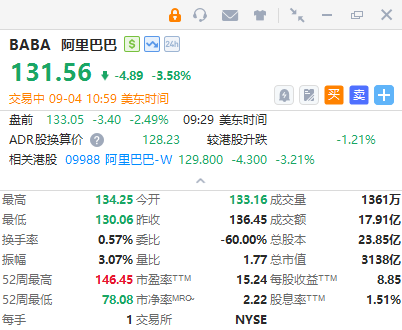 华盛资讯9月4日消息,热门中概股普跌,万国数据、小马智行跌超4%,蔚来、阿里巴巴跌超3%,小鹏汽车、瑞幸咖啡跌超2%,极氪、网易、腾讯音乐、京东跌超1%。
