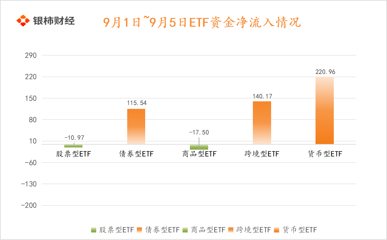 上周ETF市场共有448.19亿元资金净流入。值得注意的是,货币ETF成为上周“吸金”主力,共获得220.96亿元资金净流入,其中仅银华日利ETF一只产品,上周就获得166.22亿元资金净流入。