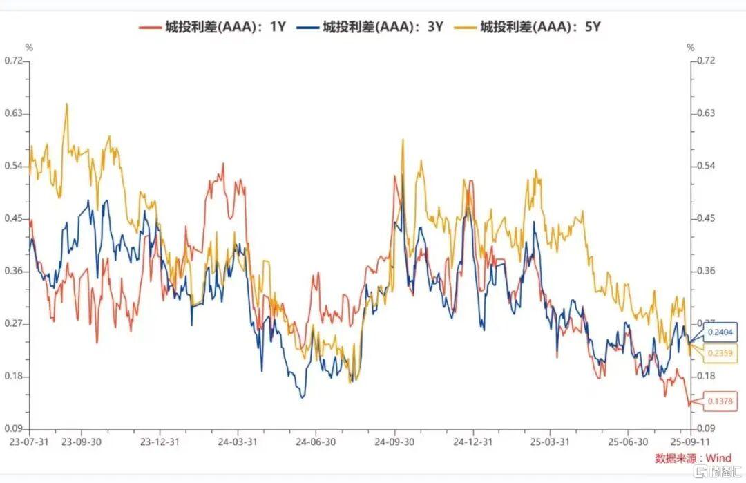 5. 近期城投债(AAA)各期限利差走势及数据