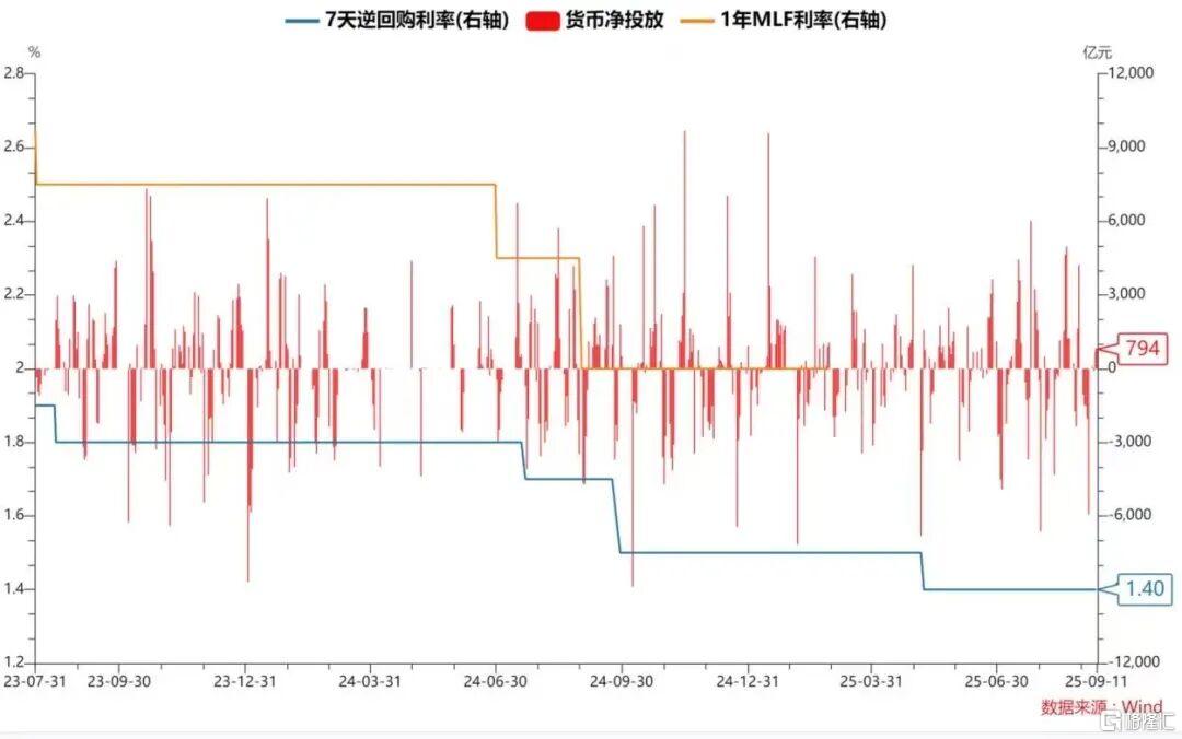 央行9月11日以固定利率、数量招标方式开展了2920亿元7天期逆回购操作,操作利率1.40%,投标量2920亿元,中标量2920亿元。Wind数据显示,当日2126亿元逆回购到期,据此计算,单日净投放794亿元。