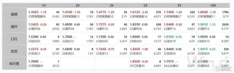 4. 银行间主要利率债收益率多数下行。