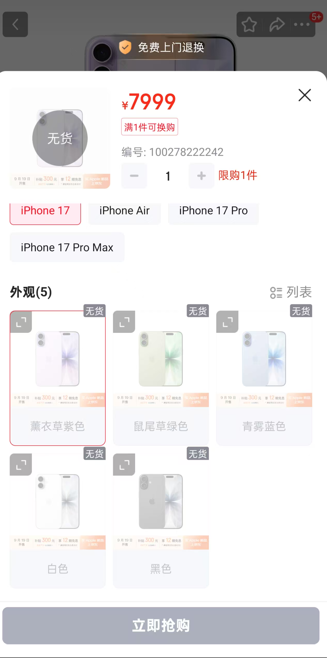 另外,广州一授权经销商店中,iPhone17的线上预购额度也瞬间告罄。店员告诉时代财经,这种情况下只能等下一波购买,具体时间得在19号发售后,视到货情况而定。