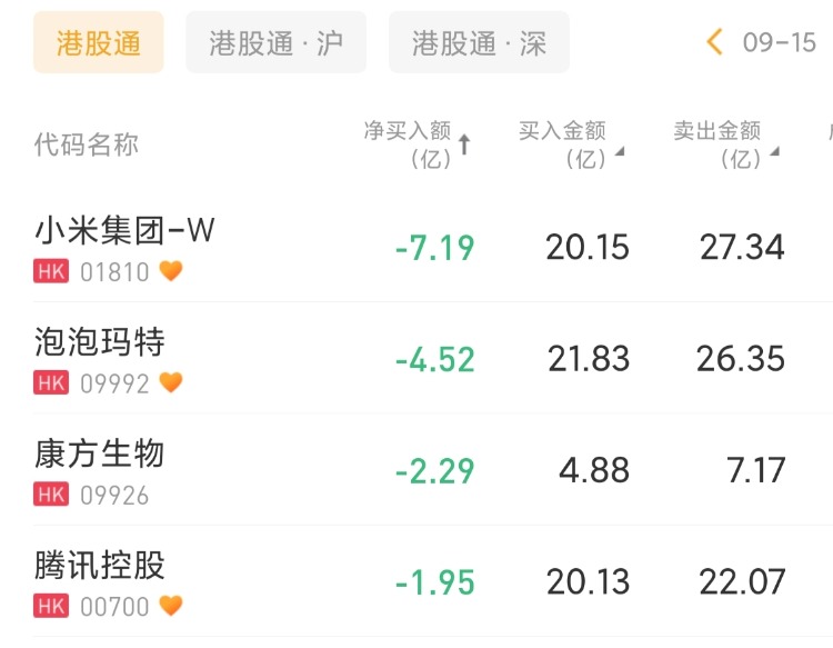 小米集团-W、泡泡玛特、康方生物分别遭净卖出7.19亿港元、4.52亿港元、2.29亿港元。
