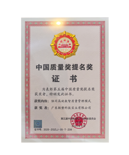 凭借领先的“协同高效数智质量管理模式”,广东联塑科技实业有限公司(以下简称联塑)荣获中国质量奖提名奖,成为行业首家获此殊荣的企业。