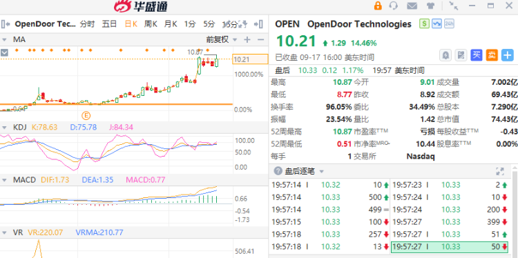 Opendoor股价一度突破10美元,该股涨超14%,消息面上,该公司表示计划在未来几周内扩展产品服务范围,以便能够在整个美国本土提供相关服务。