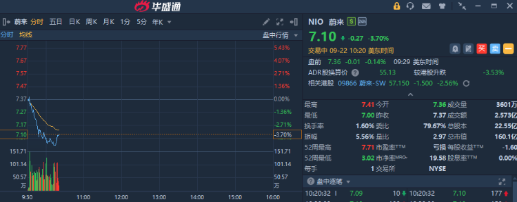 蔚来盘中走弱,现跌近4%,此前CEO李斌称ES8定价仍有合理毛利。