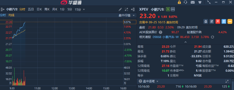 华盛资讯9月25日消息,热门中概股多数走强,小鹏汽车大涨超9%,领涨中概股;消息面上,公司此前与阿里云签署后量子安全技术合作协议。