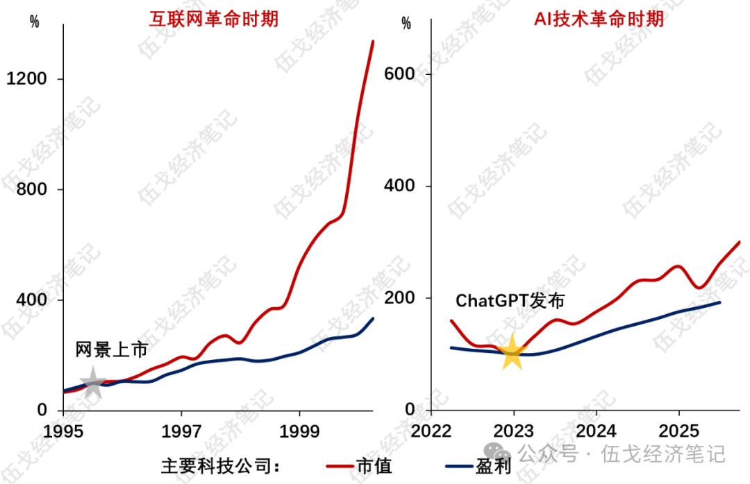 注:选取标普500指数的权重科技公司,市值和盈利为较基期的比值。