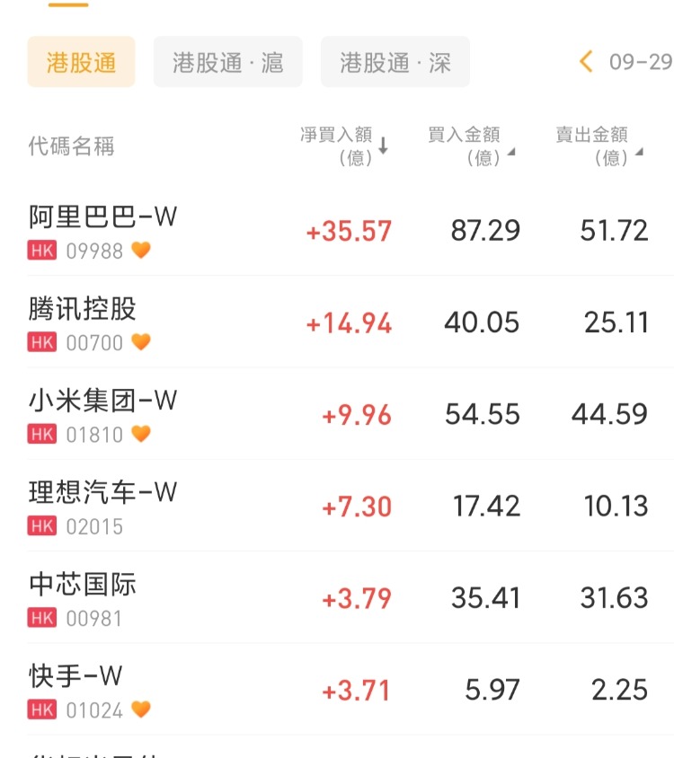 阿里巴巴-W 、腾讯控股、小米集团-W 分别获净买入35.57亿港元、14.94亿港元、9.96亿港元;