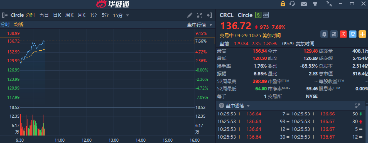 美股加密货币概念股集体走强,Circle涨超7%,IREN涨近7%,Bitmine $BMNR 涨超6%;消息面上,比特币和以太坊价格走高。