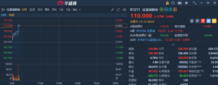 华盛资讯10月14日讯,港股汽车板块集体走强,小鹏汽车、比亚迪股份涨逾3%。