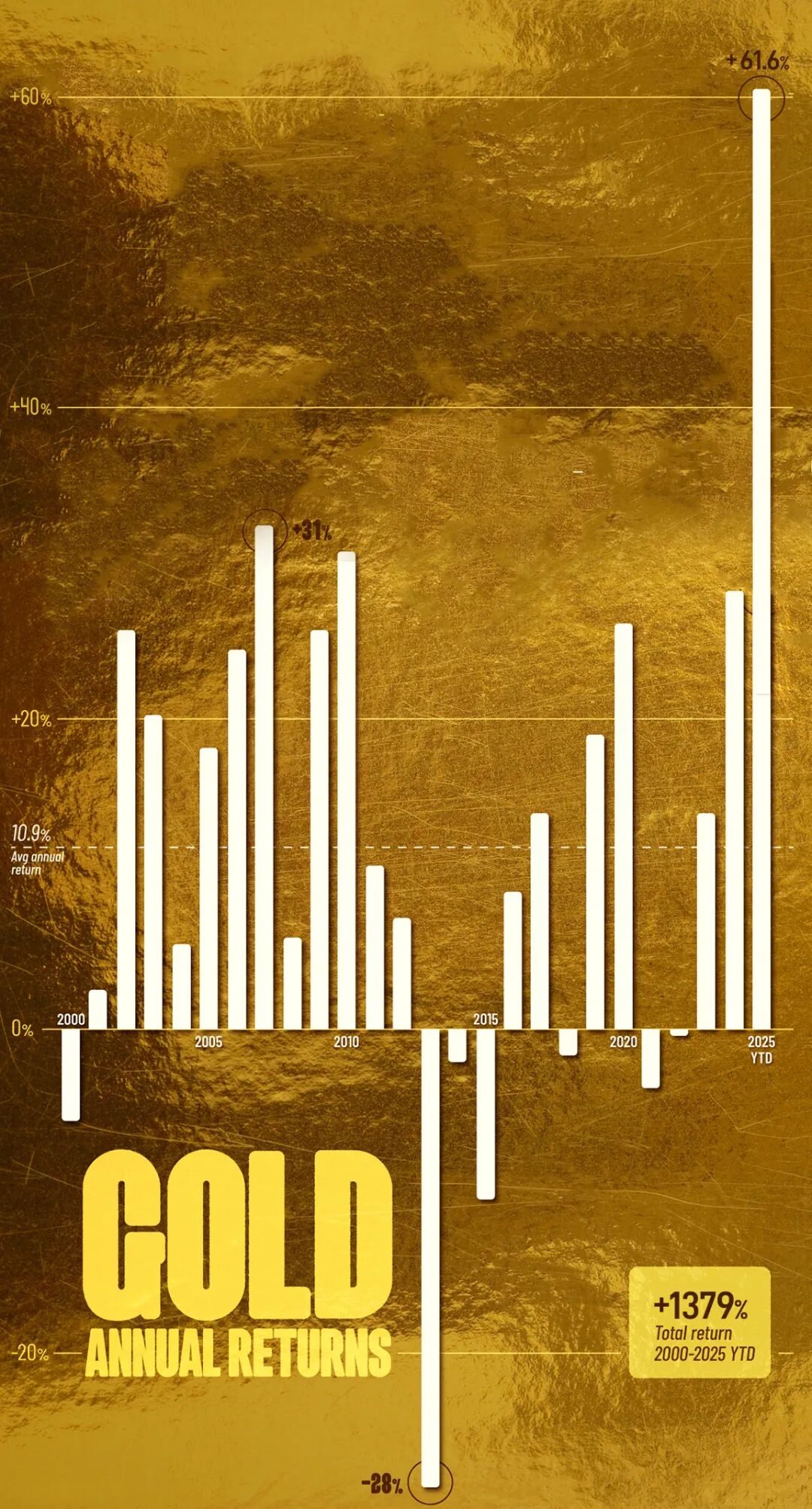 万万没想到的是,截至2025年10月17日,黄金年内已经涨超61%。是的,就是那个浓眉大眼,朴实无华的“避险资产”,涨出了AI的味道。