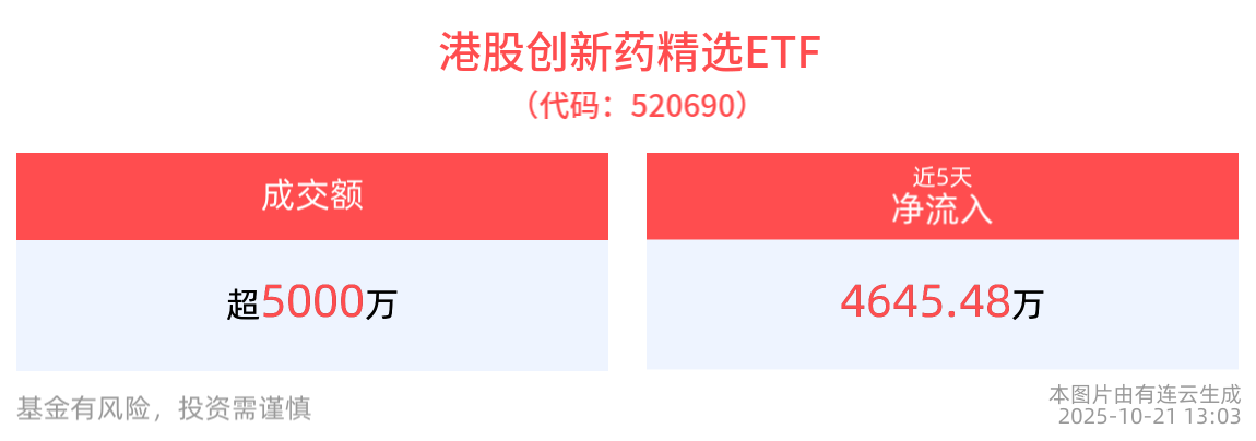 流动性方面,港股创新药精选ETF盘中换手11.33%,成交5158.91万元,市场交投活跃。拉长时间看,截至10月20日,港股创新药精选ETF近1年日均成交1.23亿元。