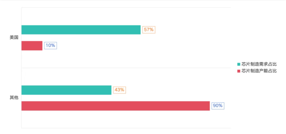 图:美国芯片制造需求、芯片制造产能占全球比例 资料来源:Yole、穆迪,36氪整理