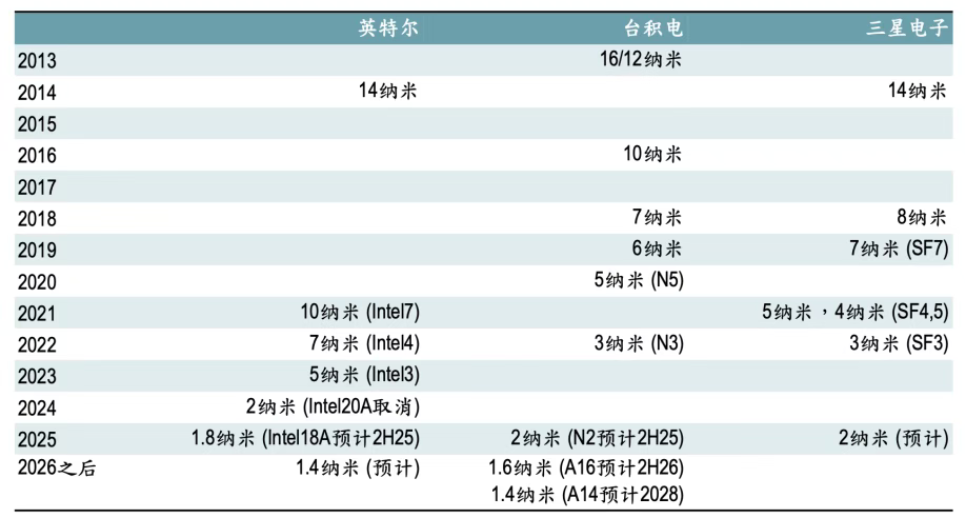 图:台积电、英特尔芯片制程对比 资料来源:交银国际,36氪整理