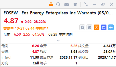 电池制造商Eos Energy股价大涨超20%,达成向宾州数据中心供电协议。
