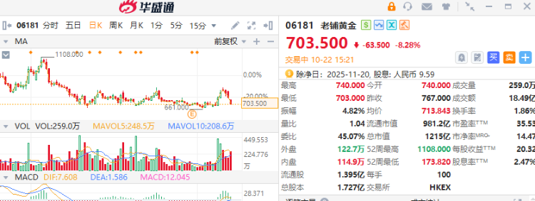 受到折让配股消息及贵金属价格出现显著回调影响,老铺黄金股价应声下挫,早段一度低见704元,看好留意老铺购 $19923.HK ,行使价968.5元,明年2月到期。