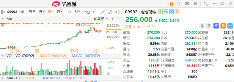若看好泡玛走势,好仓可留意泡玛认购证( $21004.HK ),行使价299.78元,年底到期,实际杠杆近7倍