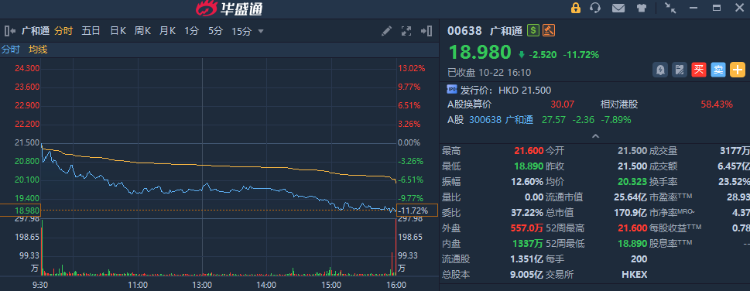 广和通上市首日跌超11%。公开发售阶段广和通获550.99倍认购,公开发售的发售股份最终数目为1350.82万股股份,占发售股份总数的约10%。合共接获约19.11万份有效申请,受理申请数目30098份,申购一手获配发股份占所申请股份总数的概约百分比为0.31%。此外,国际配售阶段广和通获9.16倍认购,国际发售股份最终数目为1.22亿股股份,相当于发售股份总数的90%。