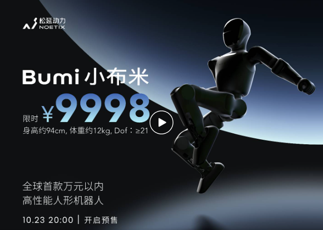 10月22日,松延动力发布新款人形机器人“Bumi小布米”,定价9998元,标志着人形机器人正式迈入消费级时代。作为全球首款万元以内的消费级人形机器人,松延动力Bumi小布米将在双十一登陆京东首发。